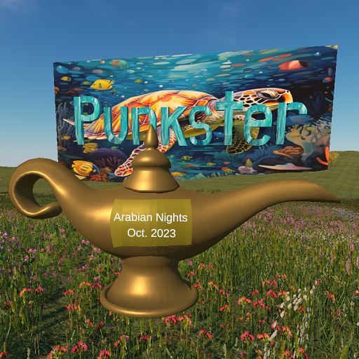 This item is a limited Arabian Nights Oct. 2023 magic lamp Lamp edited to add label and text Credit to Kay_xablau for Free model Downloaded from the turbosquid website